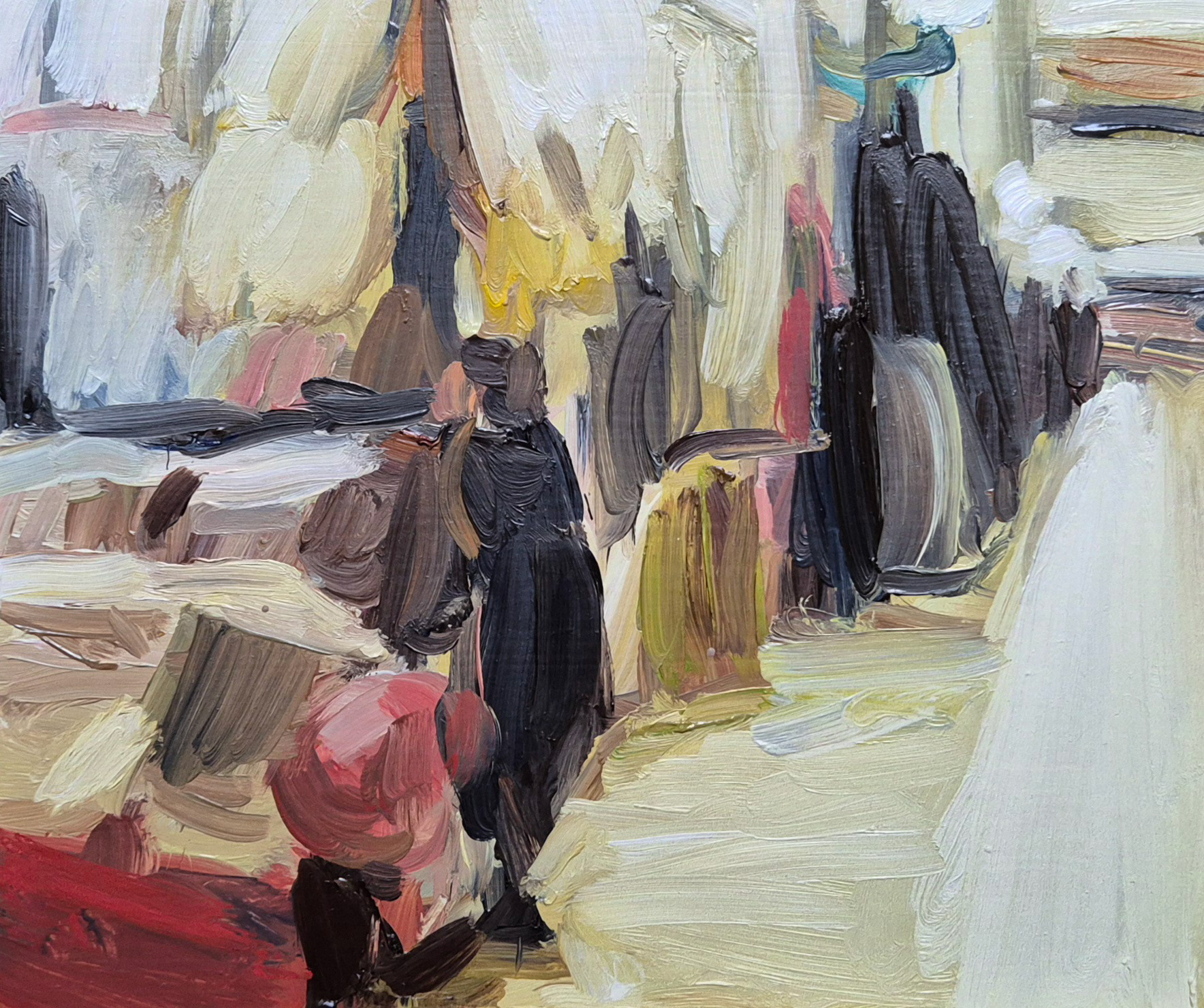 The painting is based on a found photo from the old indoor market in Preston, which has since been demolished.